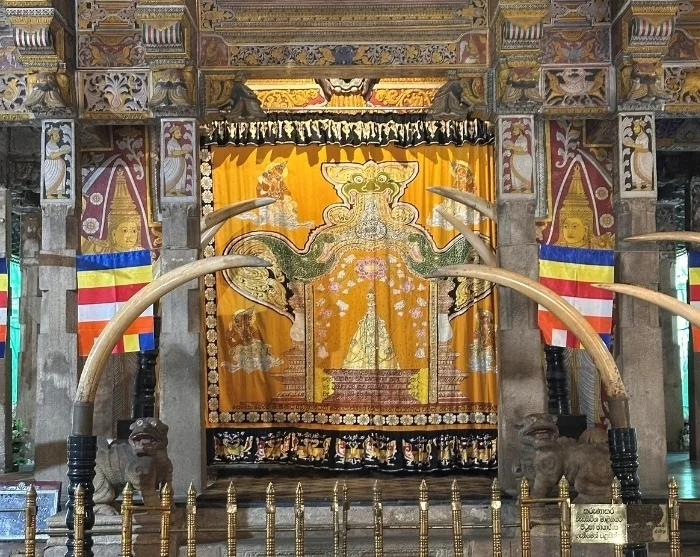 Upon arrival in the small railway town of Nanu Oya, you’ll disembark and continue by car towards Kandy—a picturesque drive of 3–4 hours that carries on through the breathtaking highlands. Along the way, you’ll have panoramic views of endless tea plantations and valleys on either side, with opportunities for the occasional photo stop, so you can capture the scenic surroundings. The route also takes you through Sri Lanka’s highest town, Nuwara Eliya—also affectionately known as ‘Little England’. Here, you can catch glimpses of the town’s English-style houses with their neat rose gardens, a living reminder of the colonial period’s legacy.