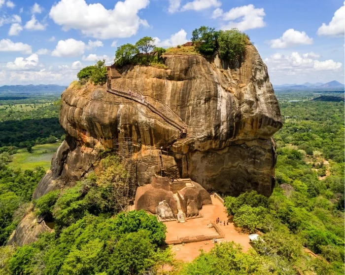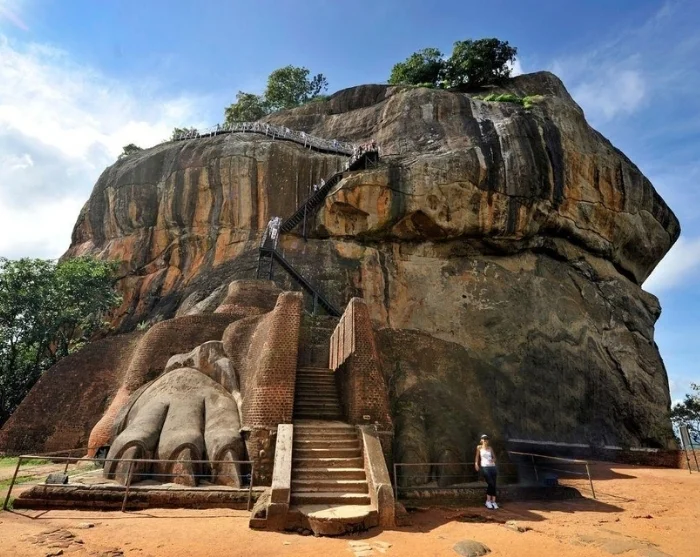 Upon arrival at Lion Rock, you’ll begin your ascent of the 1,202 steps, which will bring you to the top in just over an hour. We recommend taking it at a gentle pace, pausing along the way to appreciate the impressive architecture of the rock. As you climb, you’ll pass vibrant frescoes and the remains of a polished rock wall where King Kashyapa could once admire his own reflection. At the entrance to what was once his magnificent palace, you’ll see two enormous lion’s paws, the last vestiges of a gigantic lion that once inspired the name Lion Rock.