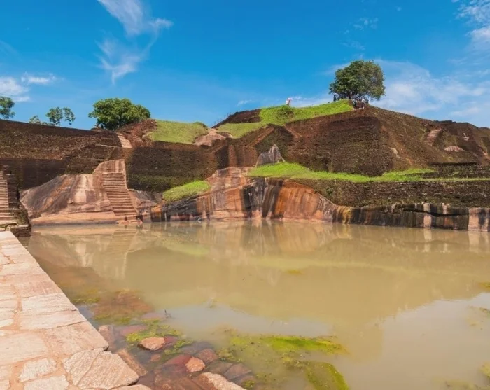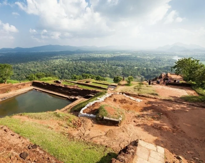 An unforgettable experience awaits you at the flat summit of the rock. From here, you’ll be captivated by the breathtaking view over the ruins of the ancient royal palace, complete with its moats, water features, and lush gardens. On the horizon, a green sea of jungle, mountains, and villages unfolds, and in the distance, you can catch a glimpse of Pidurangala Rock.