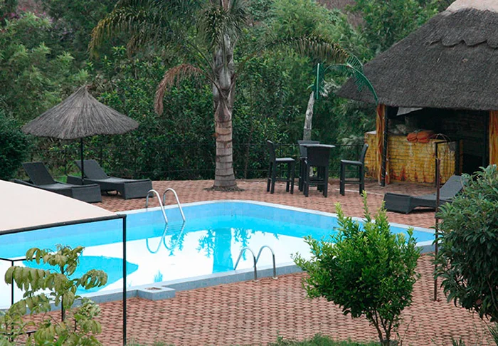 The hotel provides high standards of service with a modern swimming pool, beautiful gardens bars indoors and outdoors and spacious rooms with showers and mosquito nets.