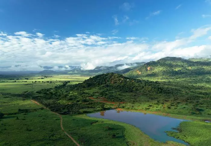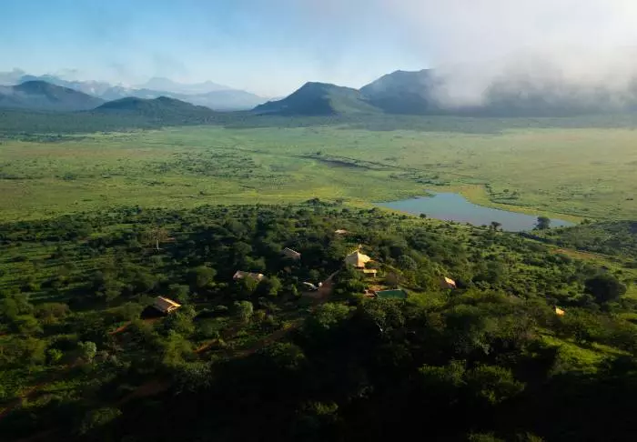 Mkomazi Wilderness Retreat is located on a hilltop with the most wonderful views of Mkomazi National Park’s only permanent waterhole.