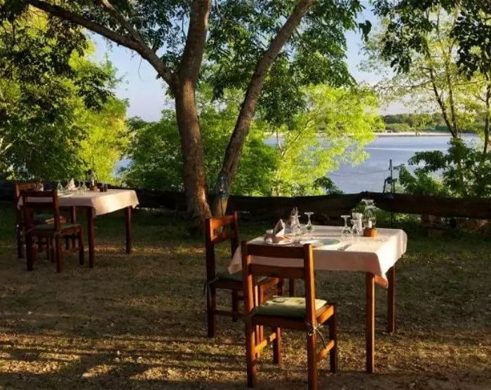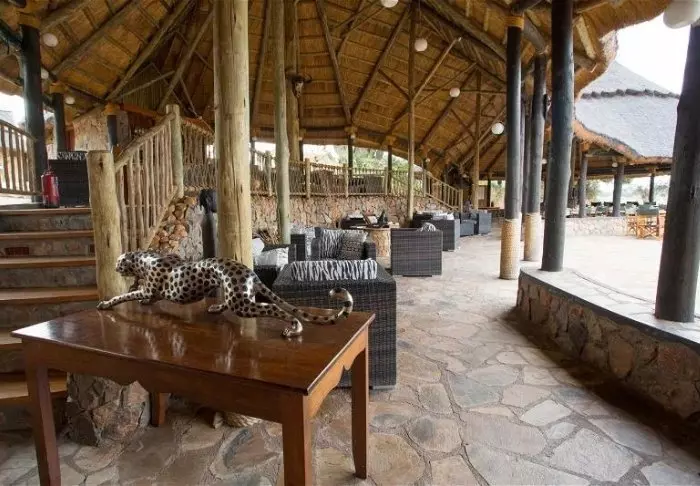 The restaurant affords a scenic view of the area, which is on the migration route. The area is also home to large herds of different antelope species, buffaloes and elephants as well as flocks of flamingos and other birds.