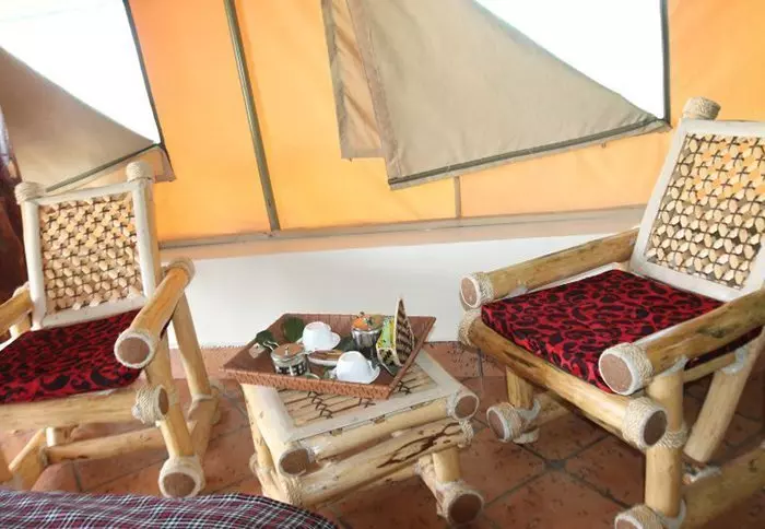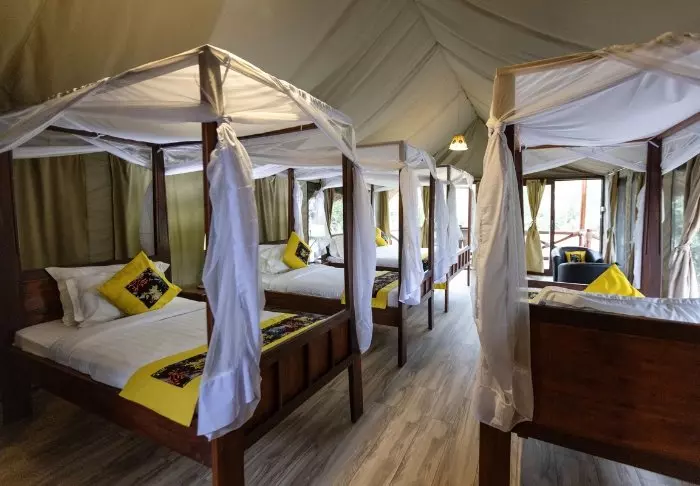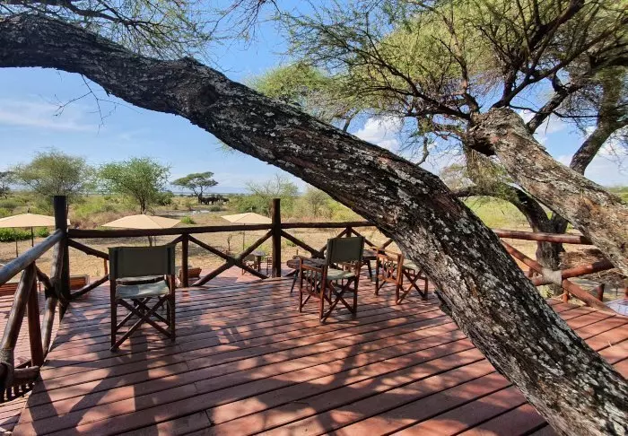 Ngorongoro Wild Camp consists of 20 large, full-height tents with a solid floor. The tents are built on poles, giving them most amazing views of the area from the terrace in front of the tent itself. All tents have their own large, tiled bathroom with running water, a toilet and a shower.