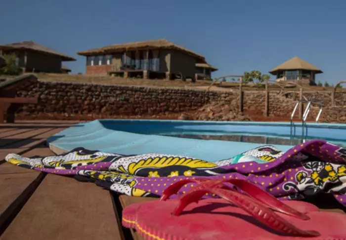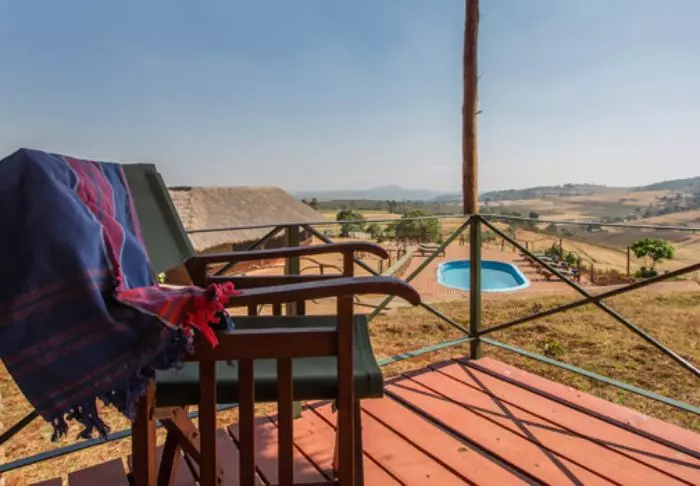 Enjoy a cool dip in the small pool after the safari – and a drink around the campfire in the evening. Look forward to dinner: the food comes from the fields around the lodge, and it goes without saying that the coffee is local!