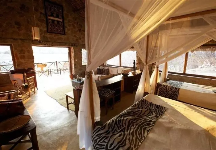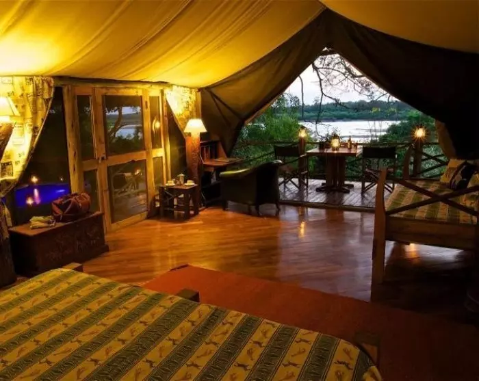 From your bed in the tent, you can hear the sounds of the African night outside. The wind is whistling gently through the canvas. You fall asleep to the sound of two bickering impalas.