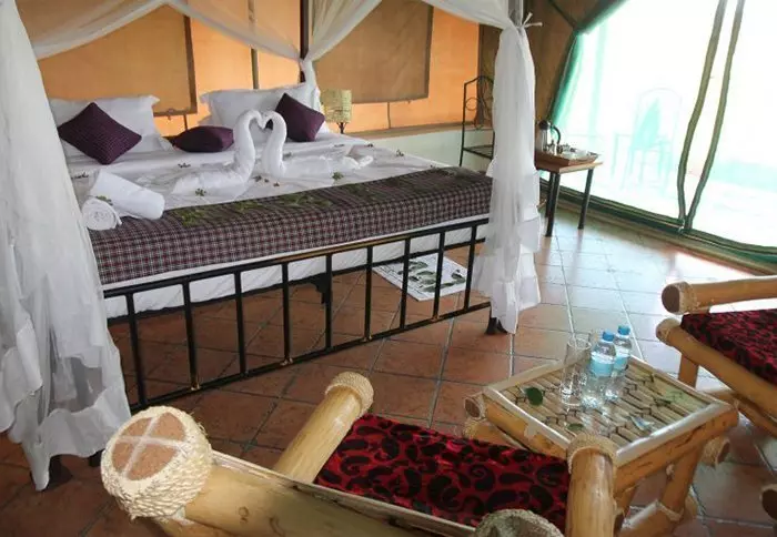 All of the tents are nicely furnished with four-poster beds with mosquito nets, desks, sofas, chandeliers and, all in all, offer really good space.