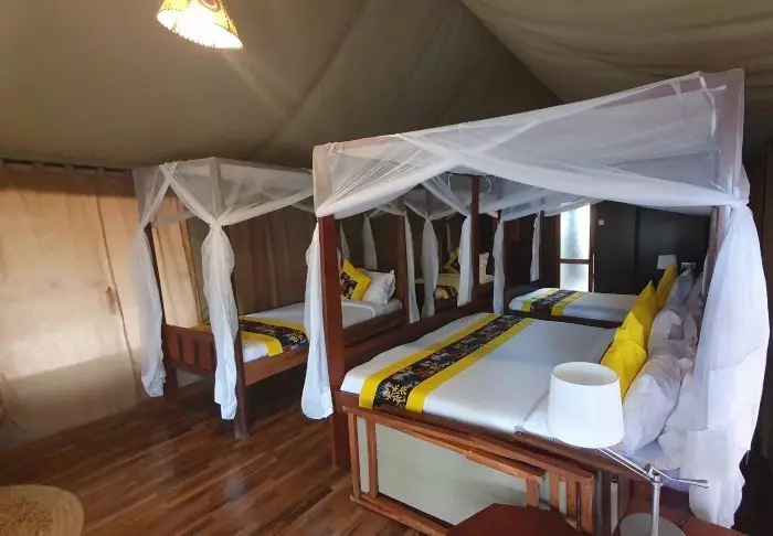 All the tents have electricity, but as there is national electricity grid in the national park, the power comes from a generator, which is turned off at night for environmental reasons.