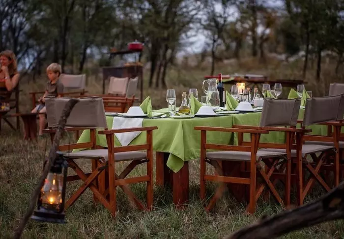Meals are typically enjoyed in the mess tent – if not set up in the bush outside, where you can enjoy the African evening sky by the cosy campfire.
