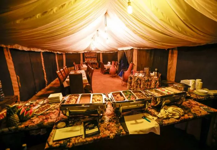 All of the tents are nicely furnished with four-poster beds with mosquito nets, desks, sofas, chandeliers and, all in all, offer really good space.