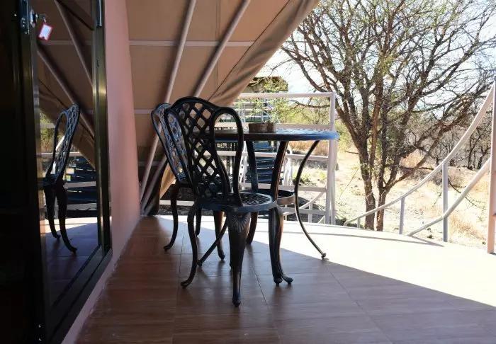 At the same time, you are also almost up at the same height as the giraffes, which often plod around between the tents.