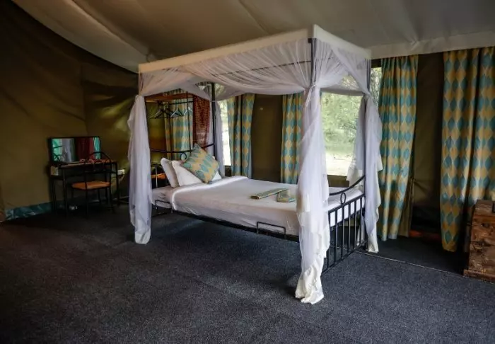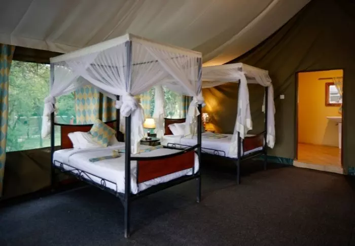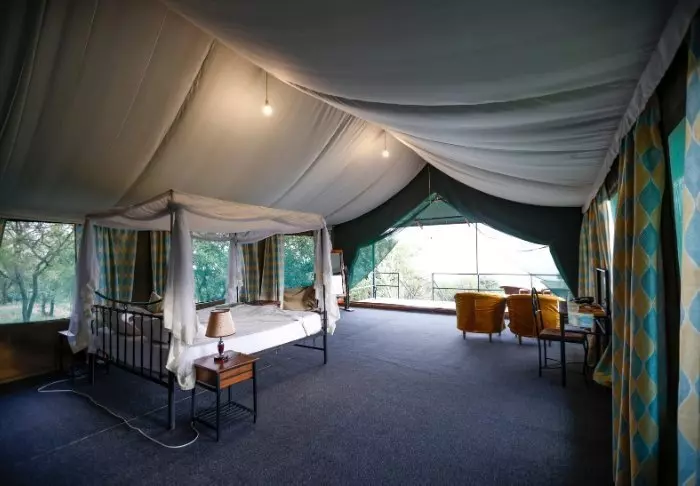 Ngorongoro Wild Camp consists of 20 large, full-height tents with a solid floor. The tents are built on poles, giving them most amazing views of the area from the terrace in front of the tent itself. All tents have their own large, tiled bathroom with running water, a toilet and a shower.