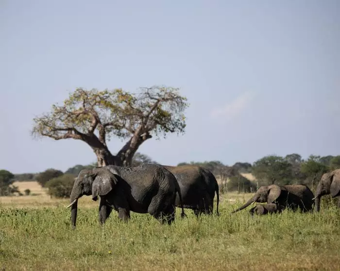 The day offers a safari in Tarangire National Park. As you are spending the night right outside the park, you have the whole day to go on safari here. And, among the attractions, you can look forward to experiencing elephants in abundance! The park is home to the largest number of elephants in all of Northern Tanzania. There are several reasons why elephants like to be here. One of the reasons is that they can always find water in Tarangire. Even during the driest period of the year, when the river is almost dried out, the elephants know where to dig for water.