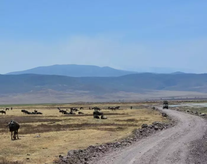 The base of the crater is flat and covers an area of 260 km2, and towering some 600 metres up above you is the crater’s edge. It feels a bit like you’re at the bottom of the world, but the crater floor is in fact 2,000 metres above sea level.