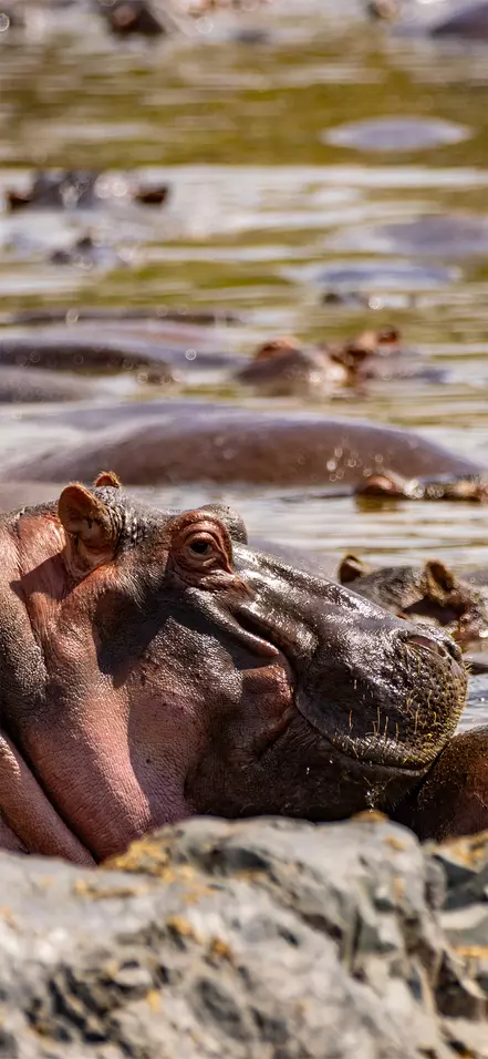 The large treeless plains are dominated by wildebeest, zebras and antelopes – not to mention the predators there to help themselves from this well-stocked pantry. In the western corridor, you will find crocodiles and hippos, and from May to July the great migration proceeds through this area of Serengeti.