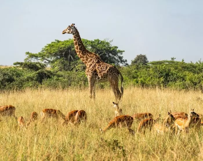 On arrival at the local airstrip, you will again be met by a guide who will drive you to your lodge, where you will stay for the next three nights. You will probably notice that the air is drier here than in Nyerere, and the heat will probably feel more comfortable. With a little luck, you will spot the first animals on the drive to the lodge, but many animals seek shade in the middle of the day, when the sun is highest in the sky.