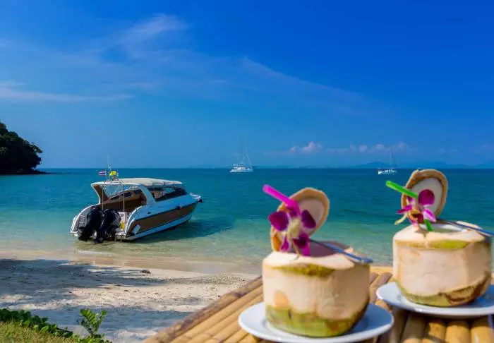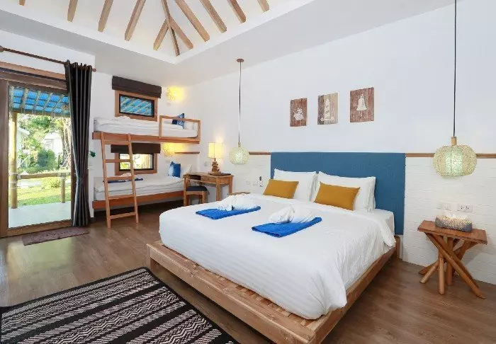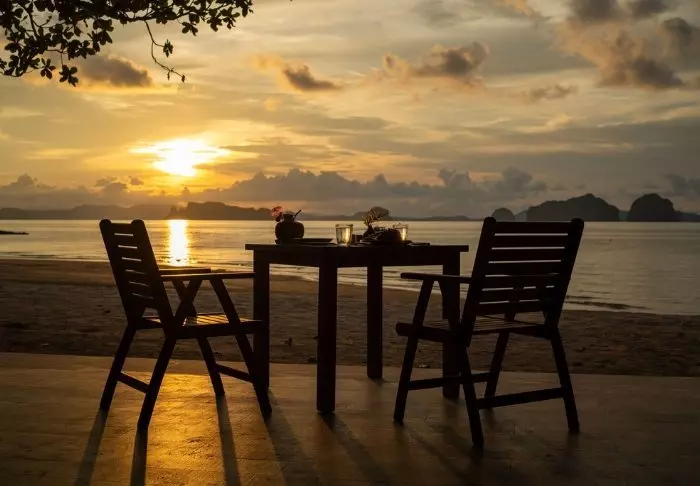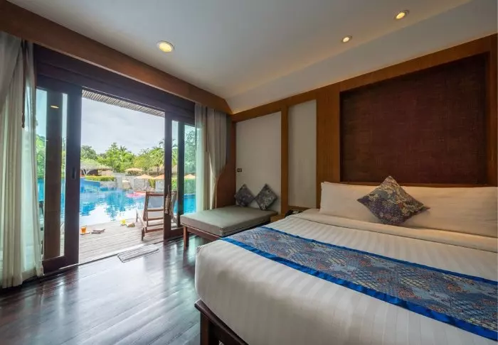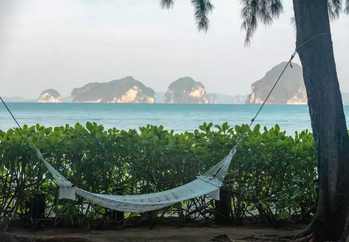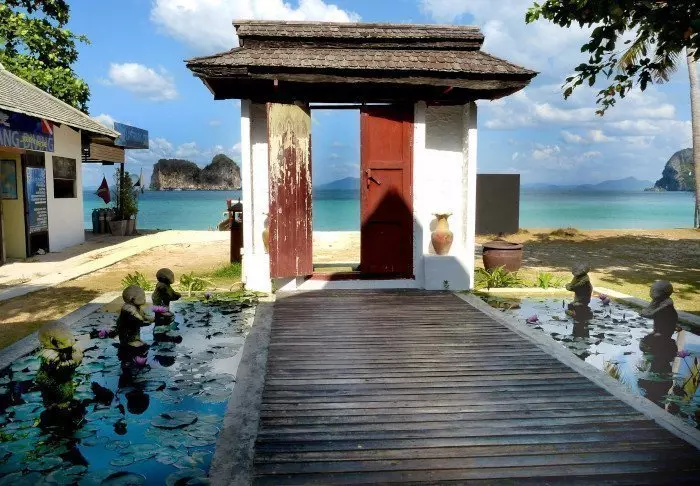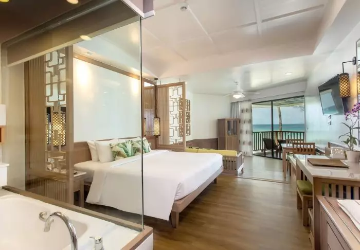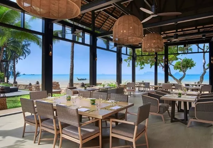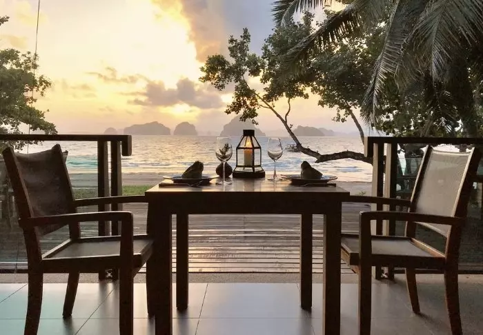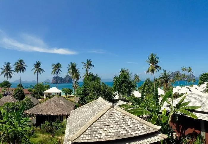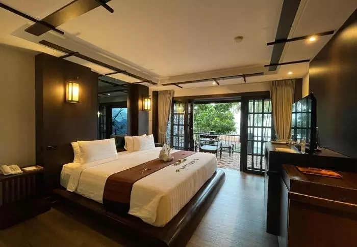 The resort is decorated in beautiful Thai style, and you are greeted by a breathtaking view of the Andaman Sea and the surrounding limestone karsts.