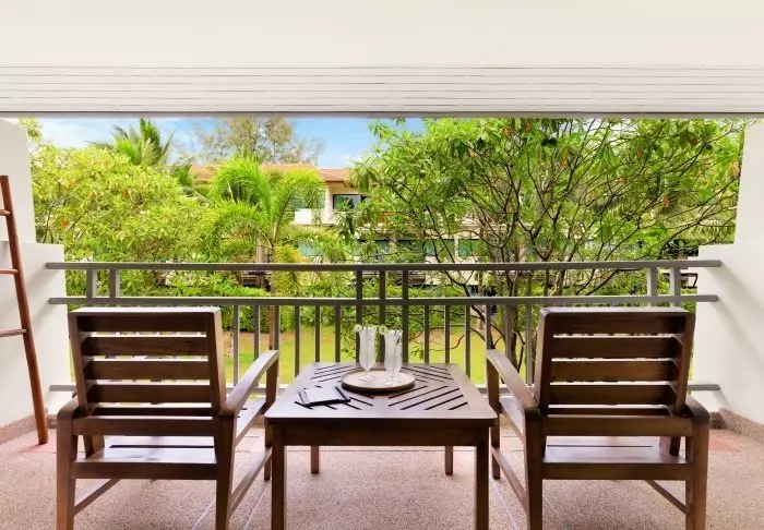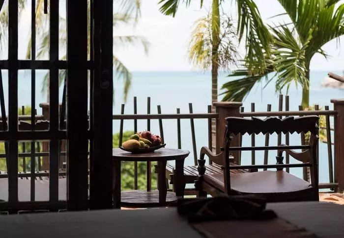 The rooms are also decorated in Thai style with beautiful wood carvings and lovely patterns on pillows and rugs. The rooms offer a TV, tea and coffee making facilities, air conditioning, a safe, a minibar, a hair dryer – and an umbrella in case of a tropical downpour. All rooms have a private balcony.