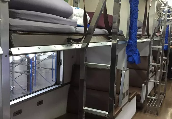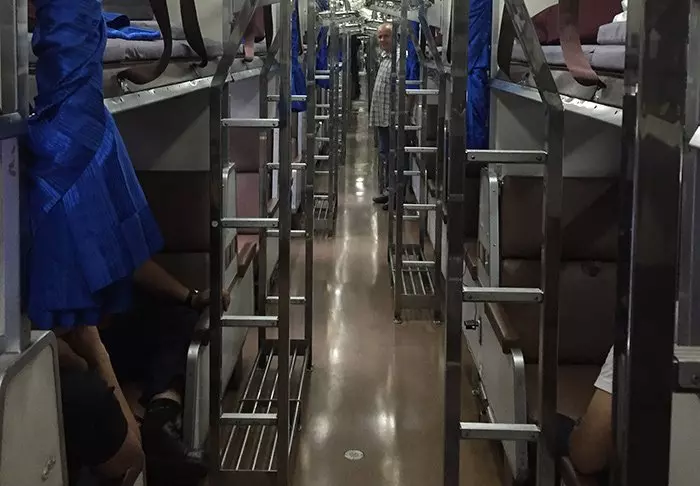 The train carriages themselves are clean and comfortable. A couchette consists of a number of screened off compartments – so not a cabin as such. When you want to sleep, the conductor comes along and changes your seat to a bed and pulls a curtain around you for privacy. All beds are made up with sheets, pillowcases and a sealed blanket in clean, freshly washed cotton. There is luggage storage in your couchette.
