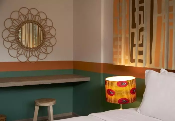 The rooms are bright and spacious and decorated with textiles in calm earthen colours. They are equipped with modern amenities such as Wi-Fi, air conditioning, ceiling fan, minibar, safety box, complimentary bottled mineral water, electric kettle for making tea and coffee as well as a wardrobe. The rooms also have a nice bathroom with shower, and you will also find toiletries, bathrobe, slippers and pool towels for free use.