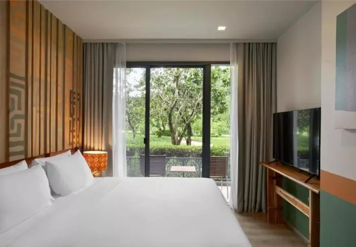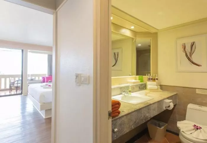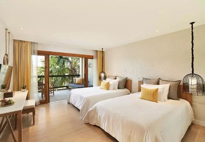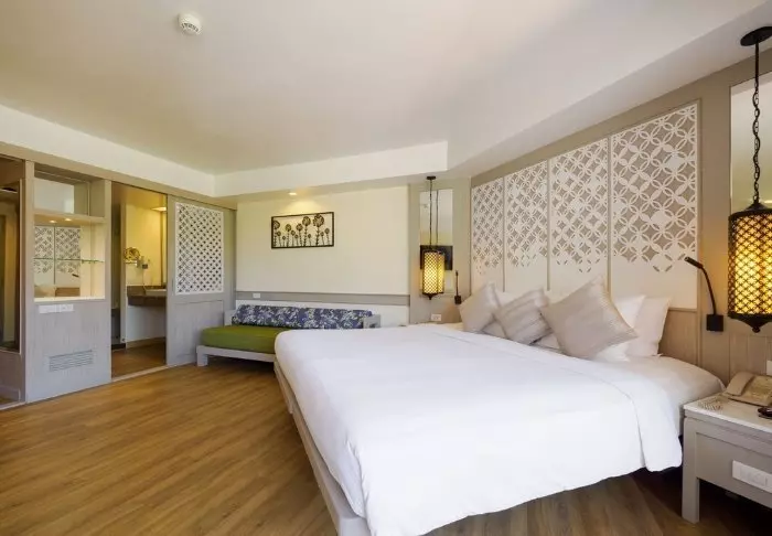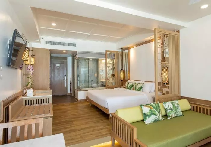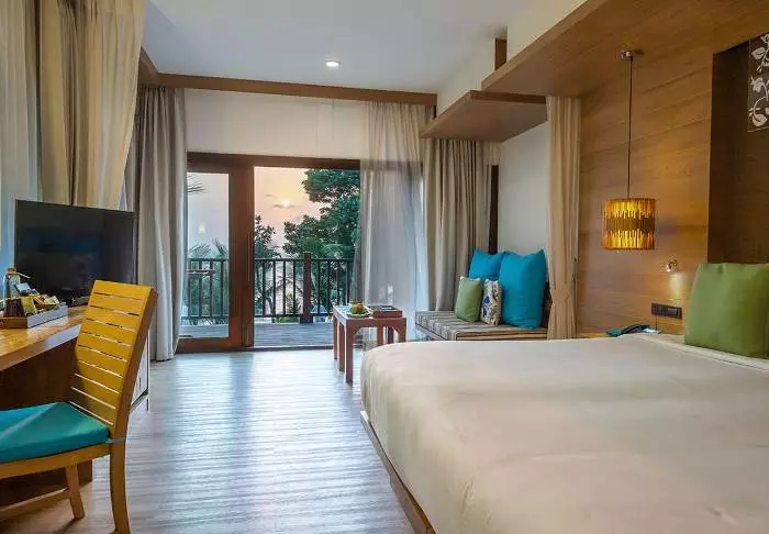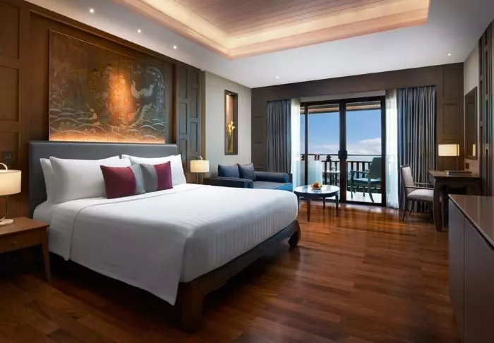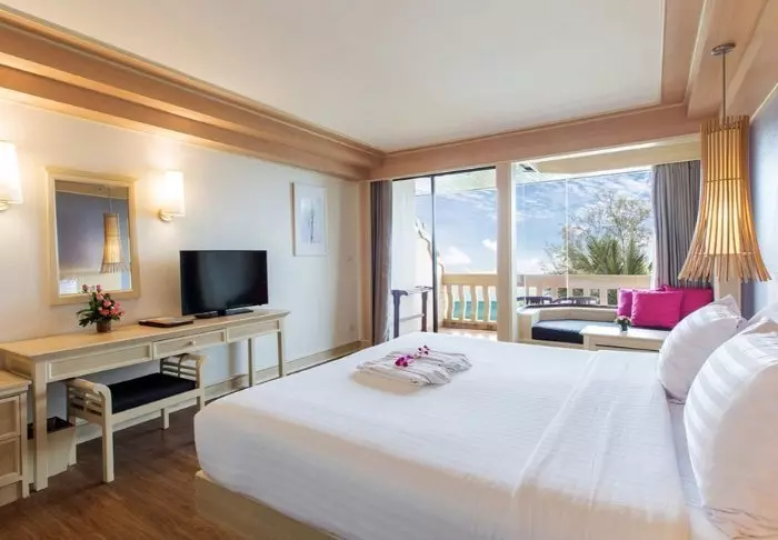 The resort has 275 rooms built in modern Thai style and decorated in light, subdued colours. All rooms have a balcony and also offer Wi-Fi, a TV, air conditioning, a minibar, a desk and a small seating area. The bathroom has a rain shower, hair dryer and bathrobes and slippers.