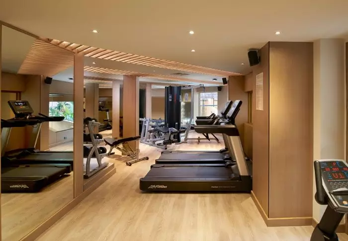 Other facilities include a gym equipped with both weights and various machines.