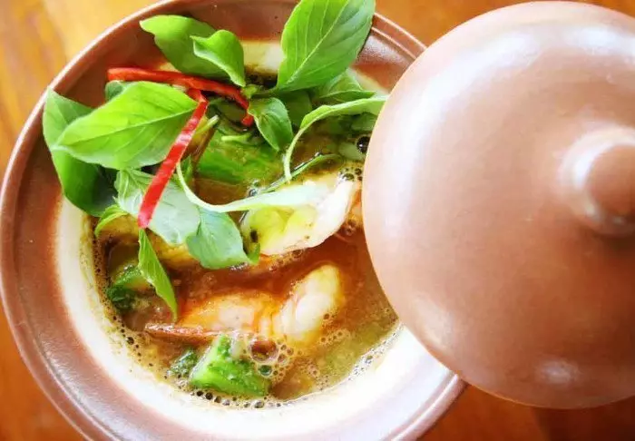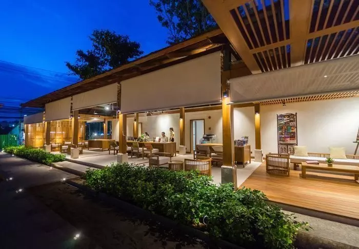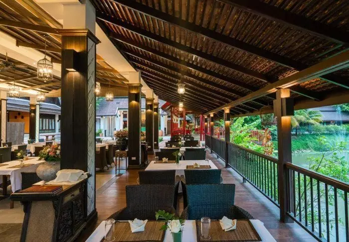 Meals are served as delicious Thai dishes in a cosy, open restaurant overlooking the river. When night descends, the place is lit by lanterns, creating a magical ambience.