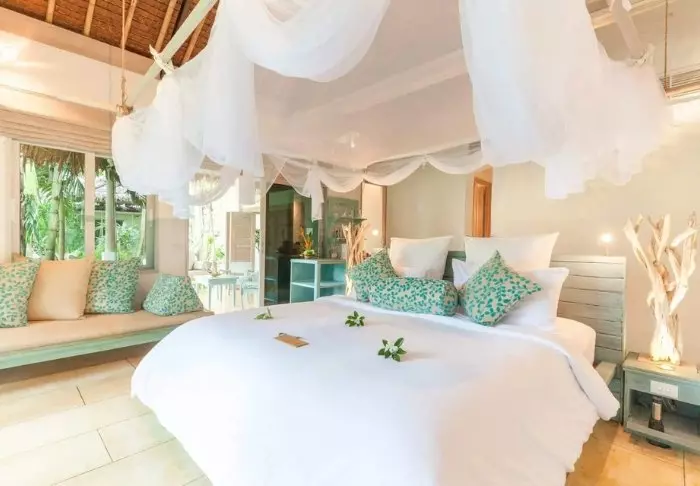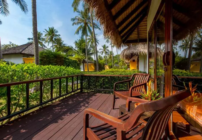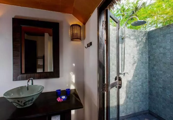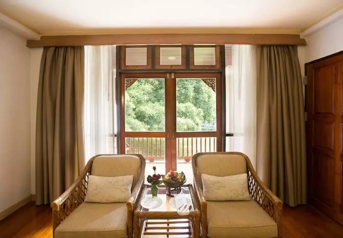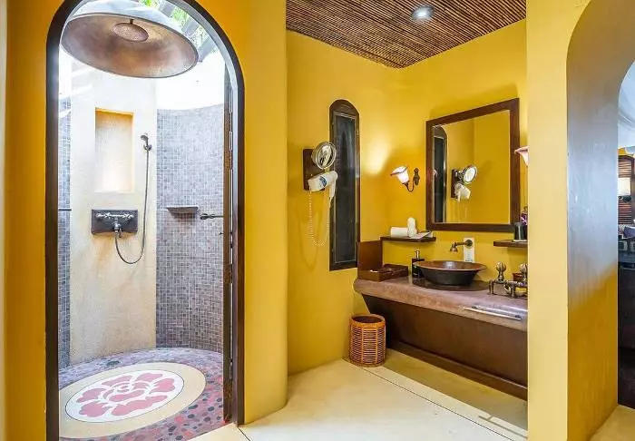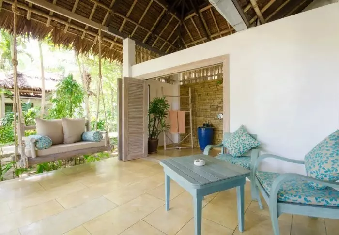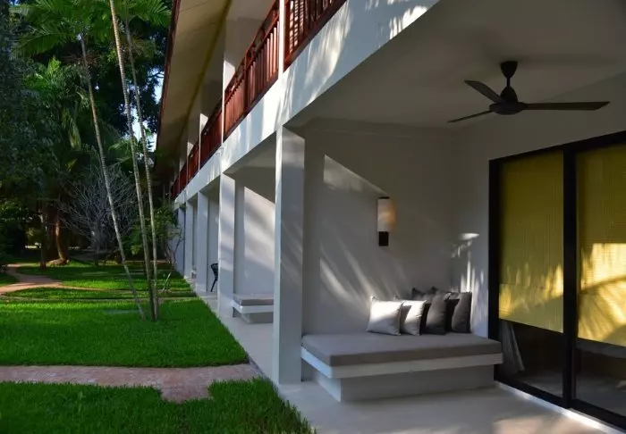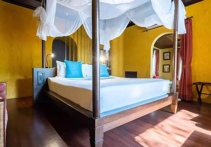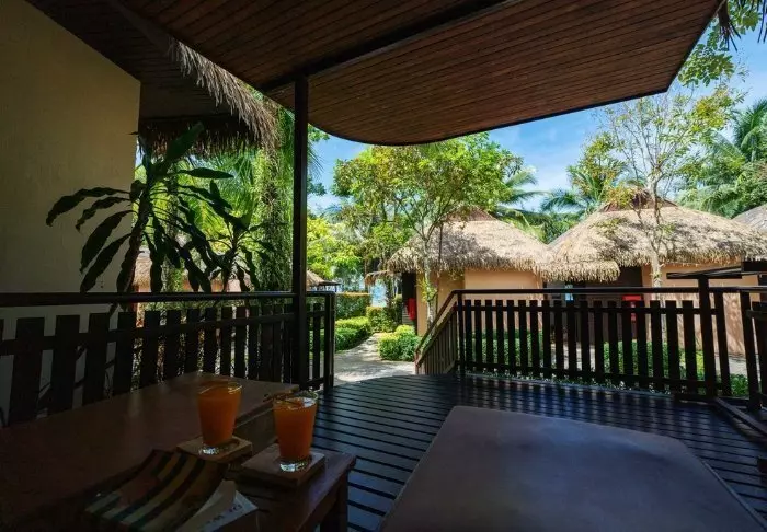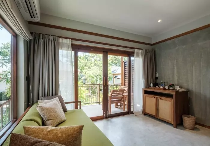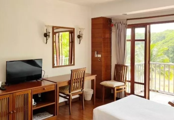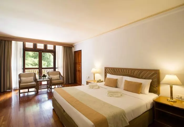 The resort has 50 spacious and traditionally appointed rooms. All rooms have free Wi-Fi, air conditioning, safe, minibar, coffee and tea making facilities, iron and ironing board, TV, telephone, desk, hair dryer and a bathroom with a separate bath and shower. The balcony overlooks the tropical garden,