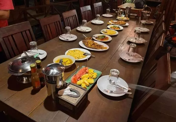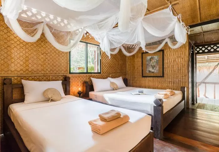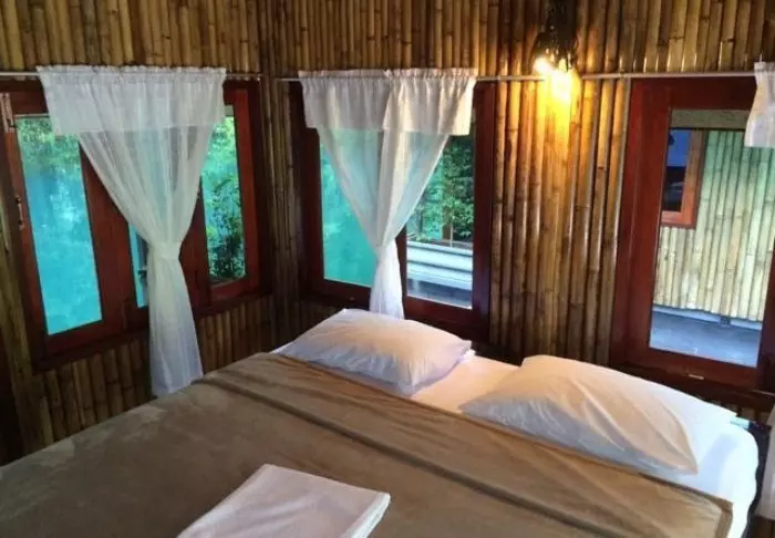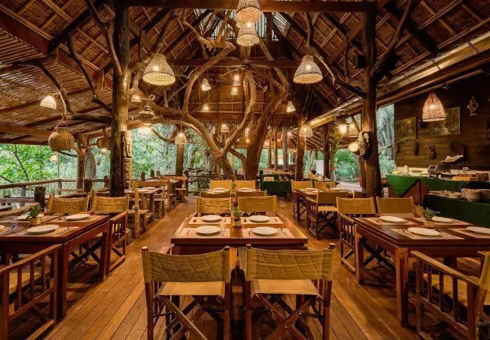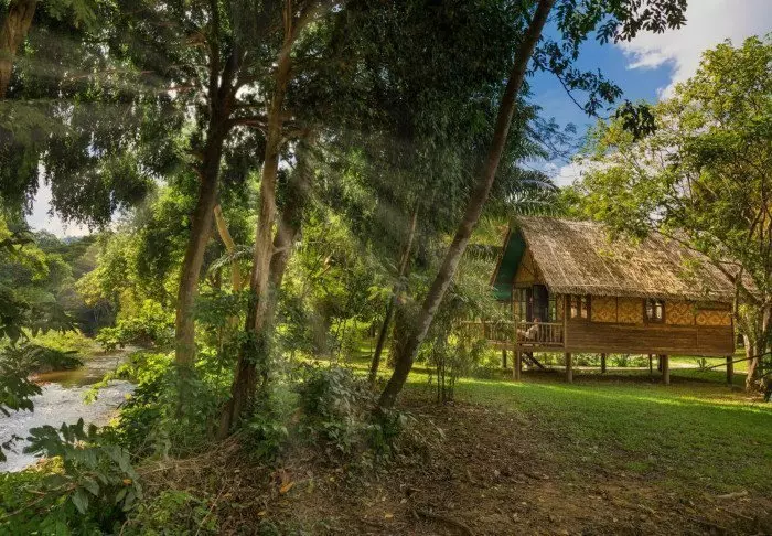 The flotel has two sections comprising a total of 100 bamboo huts. Rooms are simply furnished with comfortable beds and mosquito nets, as well as a hand-held fan, torch, vanity table, bottled mineral water, and life jacket. The rooms have no electricity, and consequently, there is no minibar or Wi-Fi. On your private veranda, you can relax in a hammock while enjoying the view of the calm river with towering bamboo along the banks and wild orchids in the trees. You can also take a refreshing dip straight from the veranda or paddle a canoe. Each room features its own bathroom with a toilet, toiletries, and a cold-water shower.