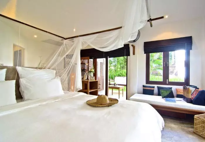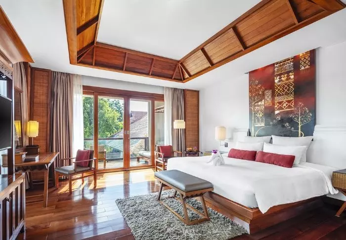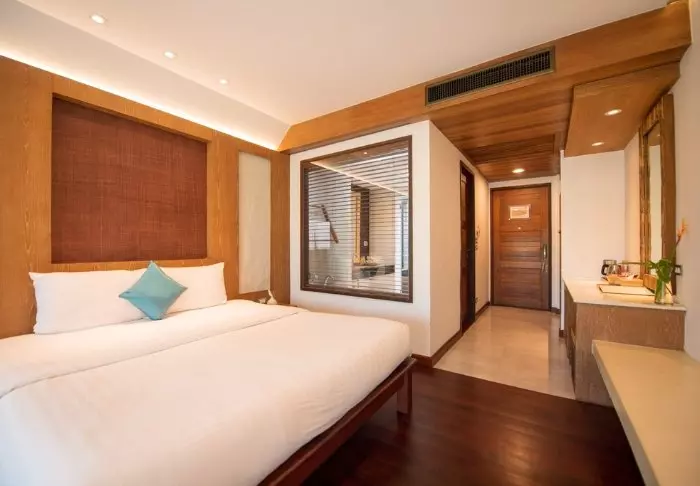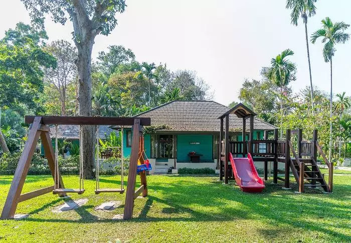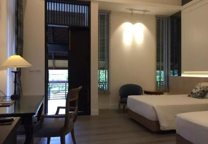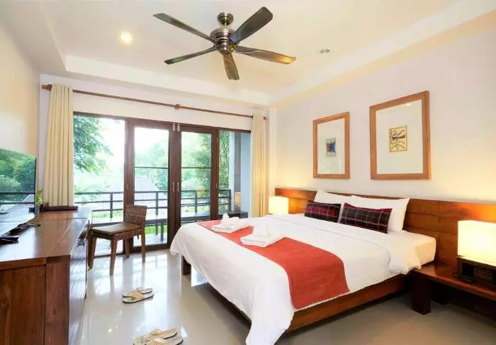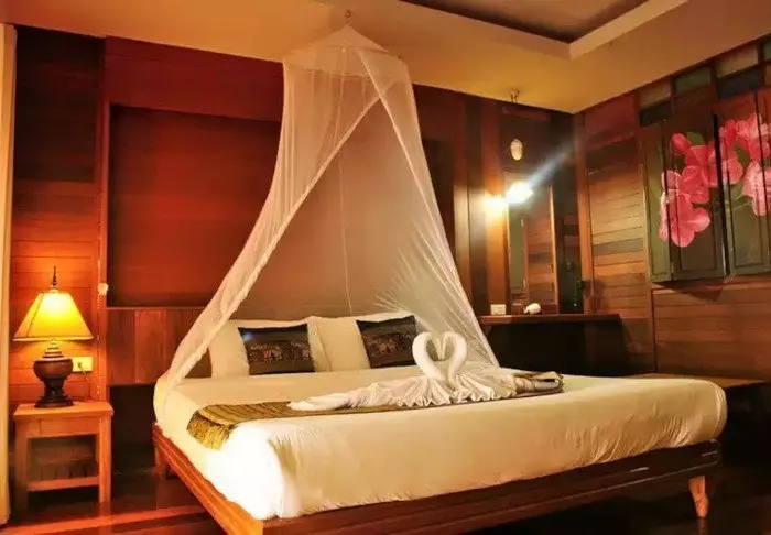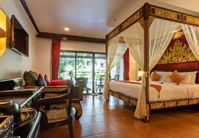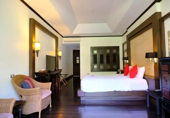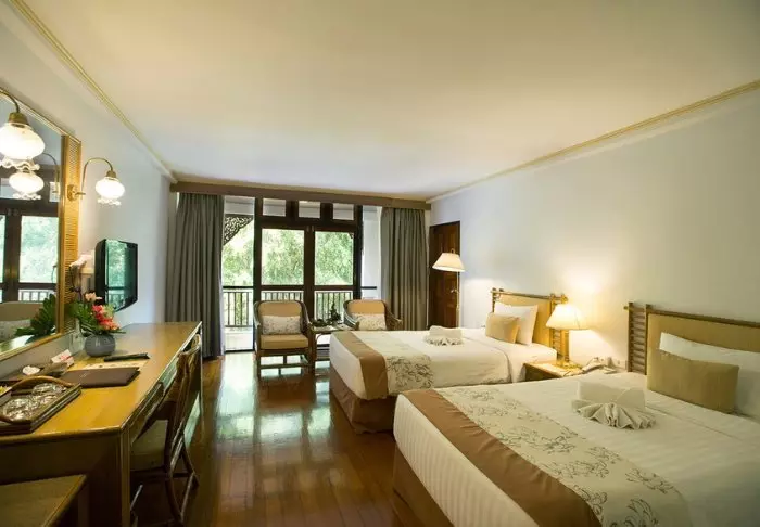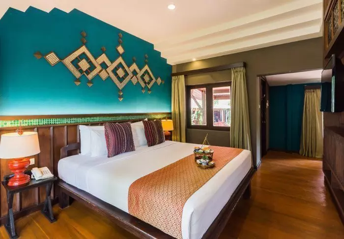 Built like a traditional village, the resort oozes cosiness. The 62 rooms are decorated in classic Thai style with dark teak furniture and colourful walls and fabrics. All rooms have Wi-Fi, air conditioning, a minibar, bottled mineral water, coffee/tea making facilities, a TV, a telephone and a parasol. The bathroom has a hair dryer and toiletries. From the balcony, you can enjoy the view of either the garden or the canal.