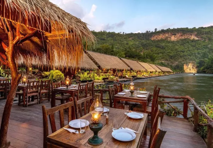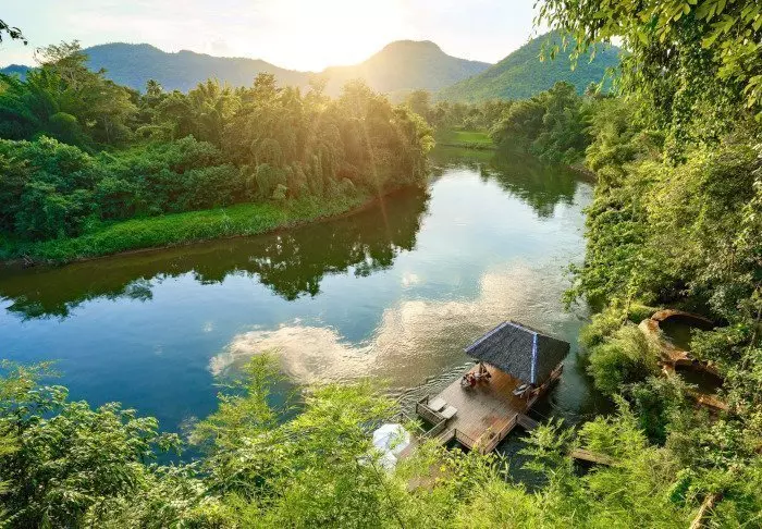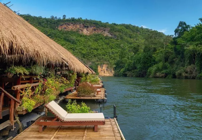 The unique River Kwai Jungle Rafts is a floating hotel – a hotel built on a raft – that will transform your perception of luxury. The flotel is securely anchored in the Kwai River with a walkway to the riverbank.