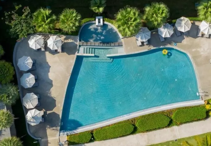 After a day of discovery, you can slip into your swimsuit and enjoy a refreshing dip in the outdoor swimming pool.