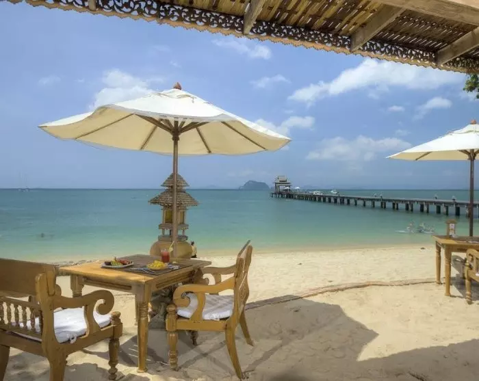 A lush garden and a 300-metre-long private sandy beach provide the setting for 40 charming villas, overlooking the lush gardens or the scenic Andaman Sea. Some even have their own pool. Each villa offers Wi-Fi, air conditioning, ceiling fan, safe, mini fridge, TV, umbrellas, tea and coffee making facilities as well as complimentary bottled mineral water. The bathrooms have an outdoor shower, toiletries and a hair dryer. The villas also have a private veranda with a table and chairs, so you can sit back and relax with a good book or simply enjoy the peace and quiet and the green surroundings.
