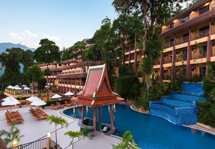Situated in a tropical garden – a stone’s throw from the long, white sandy Kata Beach – is the 3,5-star Kata Palm Resort & Spa. The hotel is built in Thai style and, though large, is both cosy and charming.