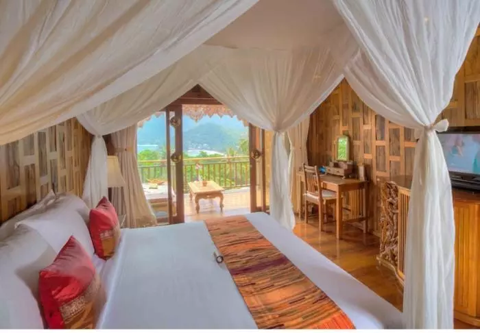 The accommodation options at Santhiya are nothing short of amazing. Each room and each villa has its own unique charm and exquisite details. Many of them have breathtaking views of the bay and the sea, and some even have private pools, creating the perfect setting for a romantic getaway or a relaxing holiday with the family. They are all beautifully decorated with authentic wood-carved details as well as modern comforts such as air conditioning, Wi-Fi, a flat screen TV, a minibar and a safe. There is also a mosquito net over the bed. The lovely bathrooms have complimentary toiletries, a hair dryer, bathrobes and slippers. In the morning, you can start the day with a cup of coffee on your spacious balcony, which has a daybed and a ceiling fan.