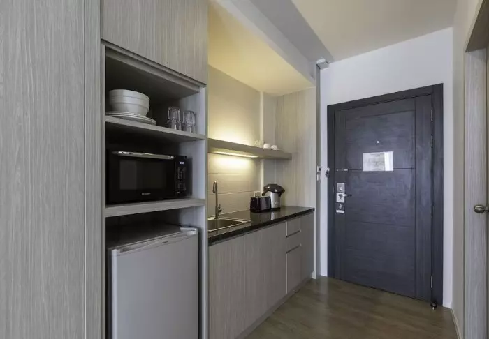 The rooms at Classic Kameo Hotel are bright and modernly appointed. You can expect spacious rooms of at least. 32 m2, which offer both a sitting area and a kitchenette with standard equipment to ensure you a comfortable and convenient stay. It goes without saying that there is also air conditioning, Wi-Fi, a safe and a flat-screen TV. The bathroom has both a shower and a bathtub, complimentary toiletries, and a hairdryer.