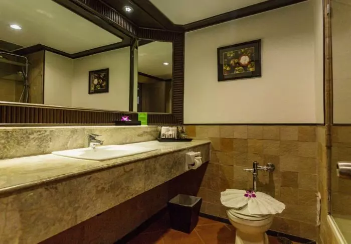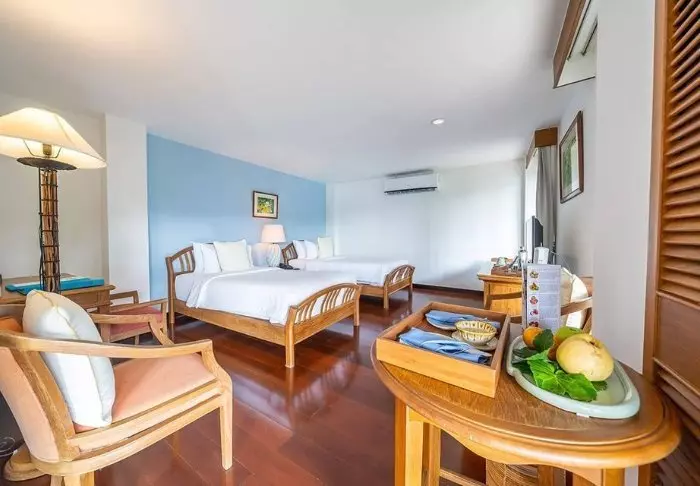 The Imperial has 104 spacious rooms with views of the natural surroundings. The rooms are furnished with dark wood furniture and traditional Thai elements, and they are fitted with everything you need, including air conditioning, minibar, flat-screen TV and electric kettle, so that you can start the day out on your private balcony with a cup of tea or coffee while enjoying the peaceful atmosphere. The bathrooms are fitted with a shower, toiletries and hairdryer.