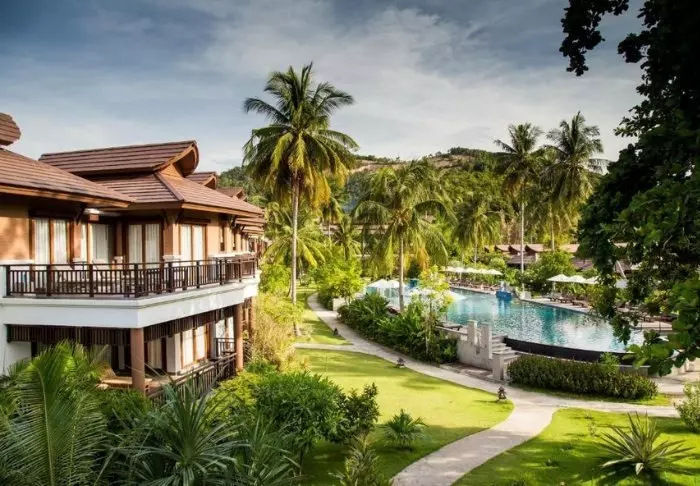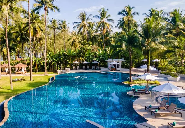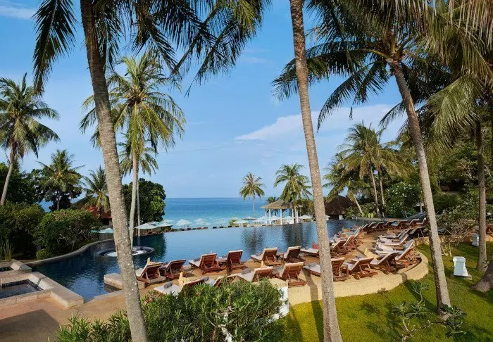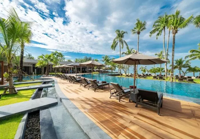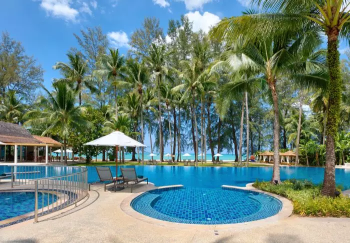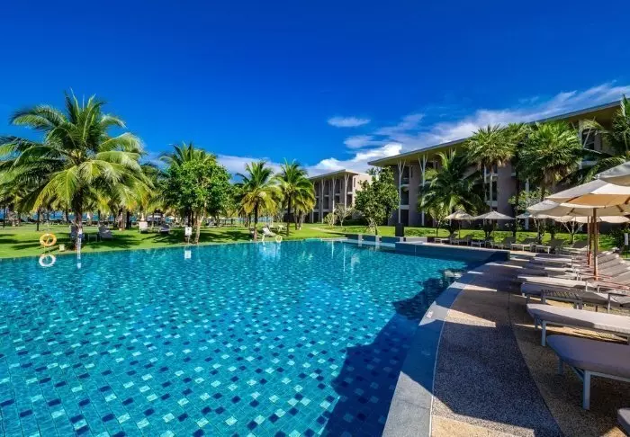 Situated between swaying coconut palms right on Bangsakin beach overlooking the Andaman Sea, with lush mountains as its backdrop, is Outrigger Khao Lak Beach Resort.