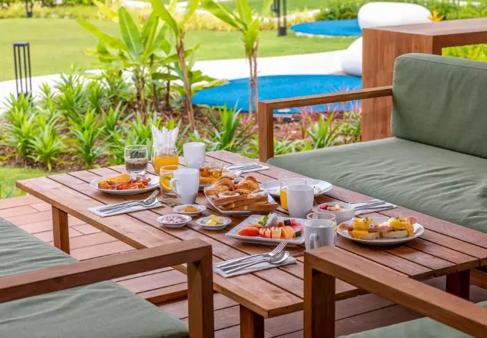 At the resort’s two restaurants, you can let your taste buds explore magnificent culinary experiences. The restaurant Mira treats you to authentic Thai and Western dishes, while the restaurant Rio offers unique Brazilian BBQ accompanied by an impressive selection of wine and live music.