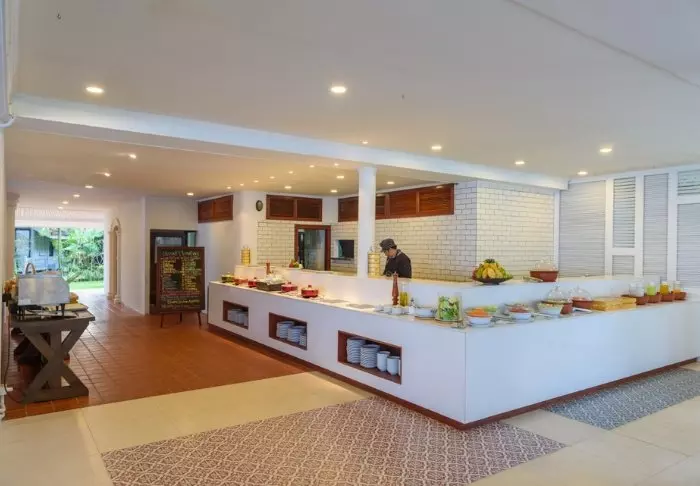 The resort also provides a range of facilities to ensure a complete holiday experience. After a day of exploring, you can take a dip in the large outdoor swimming pool, which is surrounded by tropical trees and plants, and if you want to keep fit during your tour, the resort also has a small fitness room.