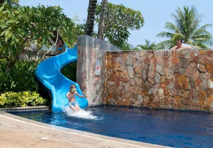 The resort consists of 3 hotel wings, each with cosy pool areas. There is also a fantastic infinity pool, where time almost stands still when you rest your head on the edge of the pool to the view of swaying palm trees and the beautiful emerald-green sea. The resort also has a pool area for children offering plenty of opportunity to splash about in the water and have a little go on the water slide.
