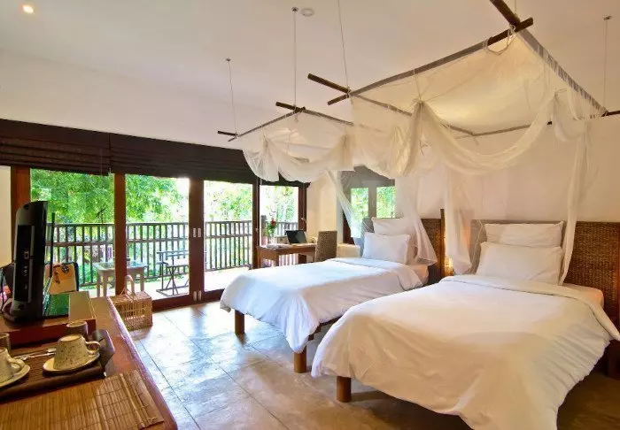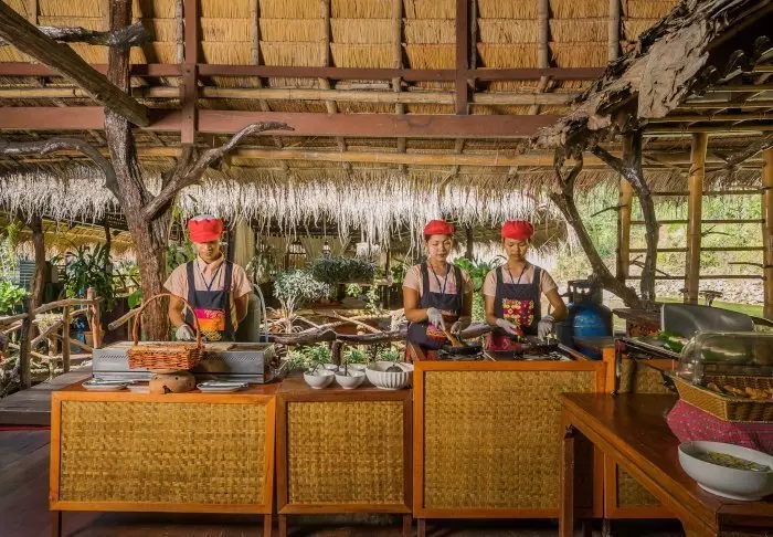 After a day filled with experiences, you can enjoy a dip in the hotel’s infinity pool, which is beautifully decorated with locally made tiles. You can also just hang on to the poolside and admire the breathtaking views of green fields and the Mae Yen Mountain. There are even sun loungers, so that you can easily rest and relax under the rays of the sun.