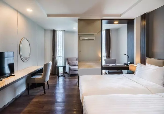 When you’re not out exploring the Thai capital, you can look forward to enjoying the pool area, which is practically a little oasis with swaying palm trees. Here, you can unwind with a refreshing dip or soak up warm sunbeams on a sun lounger. You can also head for a workout session at the hotel’s well-stocked fitness centre, which offers a wide range of cardio and strength training equipment to help you stay in shape. If you seek deeper relaxation, you can also book a massage at the hotel’s spa area or treat your body to a visit to the sauna, steam bath, or jacuzzi.