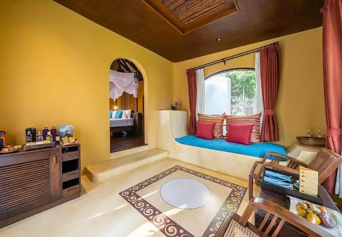Tamarind Village has 46 rooms and suites, each with a gorgeous interior of hand-made furniture and colourful textiles. All rooms provide the modern facilities you need for a comfortable stay, including air conditioning, a mini-bar, Wi-Fi, a safe, coffee and tea facilities, as well as a lovely view of the beautiful, lush gardens with tropical vegetation. The bathrooms are elegant and offer hair dryers, bath robes, slippers, and various toiletries.