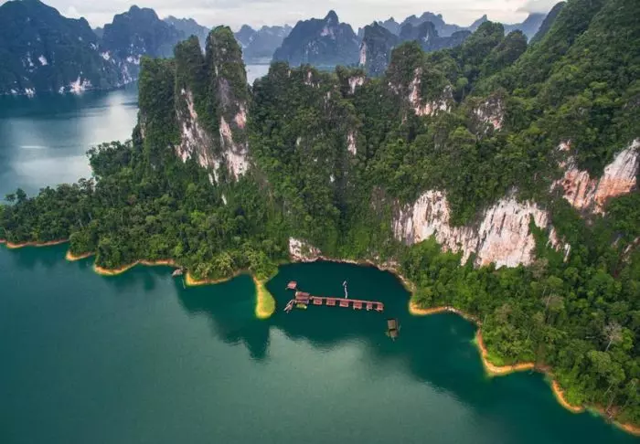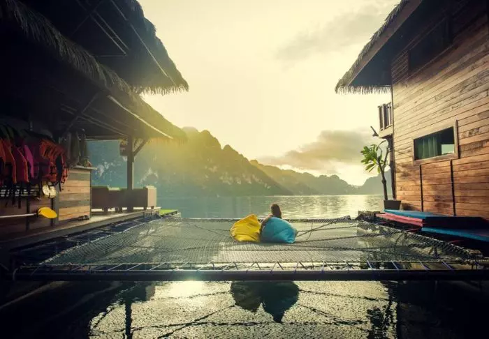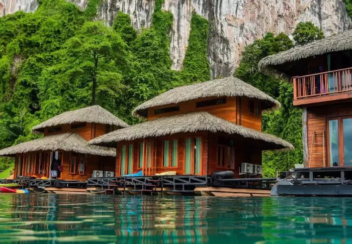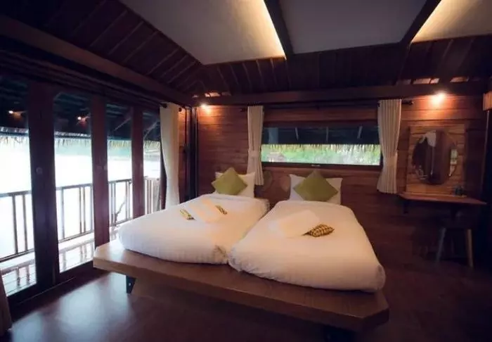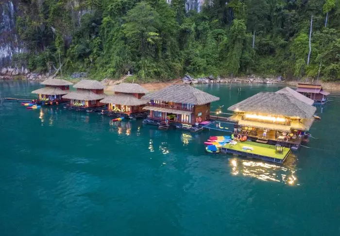 Imagine waking up in the middle of Cheow Lan Lake in Khao Sok National Park to the sounds of jungle animals and a view of green-clad limestone karsts while enjoying your morning coffee on your terrace. That’s exactly what you get at the floating hotel, Panvaree The Greenery.