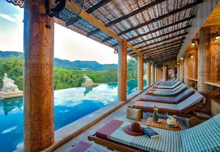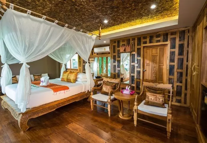 The resort is built with traditional Thai building style in mind and with hundreds of neatly carved wooden elements that form the setting for an authentic experience. Also soak up the atmosphere as you move around the lush gardens of the resort among temple-like houses.
