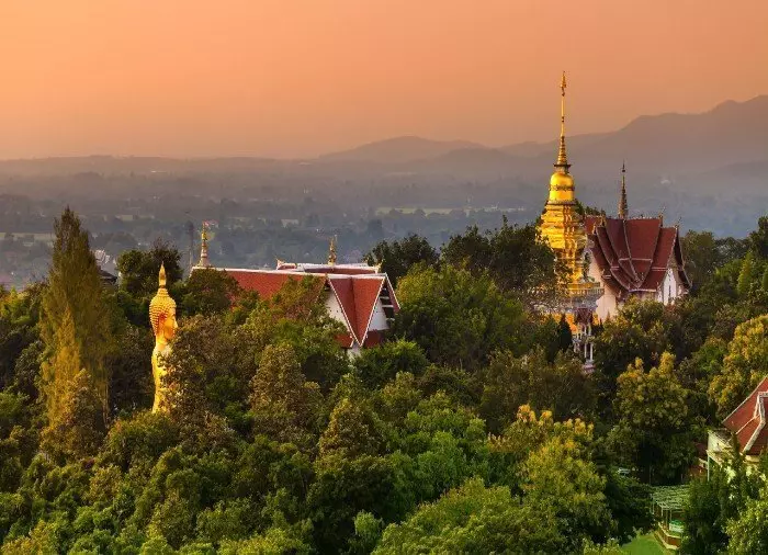 You’ll be picked up from the hotel and driven out of the city and up Doi Suthep, after which the temple, which was founded as far back as 1383, is named. Exotic shrubs and trees bloom around you, and the air becomes a little cooler as you approach the top.