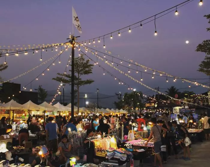 Dinner is served at the hip Chillva Market, a short drive away, where, you can taste the market’s delicious local specialities, such as juicy satay skewers, grilled lobster, sushi, and the dessert sticky rice with mango. Sit yourself down on a plastic stool and enjoy the atmosphere, often with live music to complete the mood.