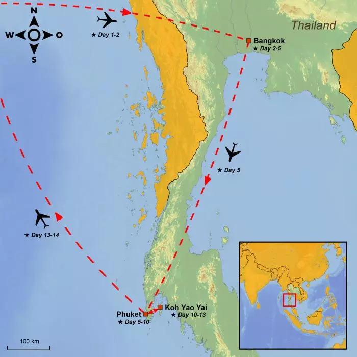 Today, the time has come to say goodbye to Thailand. You’ll be picked up from your hotel and driven to the pier, from which you’ll sail back to Phuket. A driver will be waiting to drive you to the airport, which takes about 30 minutes, and you’ll fly back to Europe with connecting flights(s) along the way.