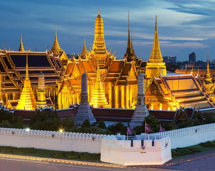 You’ll wake up in Thailand’s bustling capital — a city of striking contrasts where futuristic skyscrapers rise beside ancient temples, and modern skytrains glide several metres above the streets while traditional river taxis ferry locals and visitors alike between Bangkok’s many attractions.