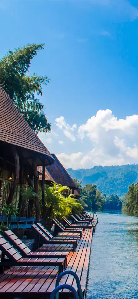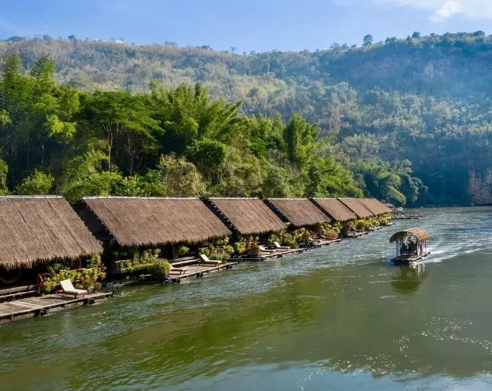 After a hearty breakfast, you will check out and be taken by longtail boat to River Kwai Jungle Rafts, where you can leave your luggage until check-in later in the day.